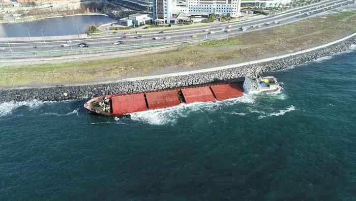 Marmara Denizi'ndeki fırtına nedeniyle karaya oturan 108 metrelik gemi batmaya başladı!
