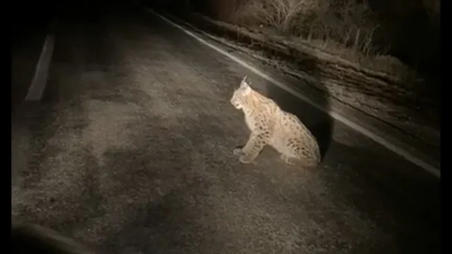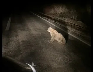 Nesli tükenme tehlikesi altında olan vaşak Tokat'ta yol ortasında görüntülendi! Korno çalınca...