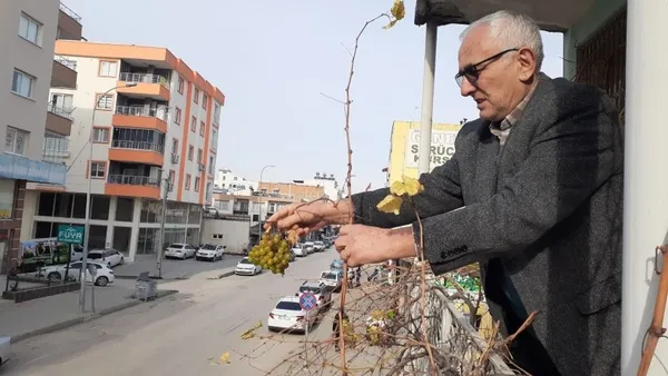 Cengiz Topel Mahallesi Osmaniye yolunda bir evin balkonunda bulunan asmadaki üzümler görenleri hayrete düşürdü. Asmanın sahibi Hüseyin Karakuş evinin bahçesinde yetişen asmanın üzümlerinin normalde Ağustos ayında olgunlaştığını ancak 6 ay önce kışın ortasında ilk defa üzüm verdiğini söyledi.