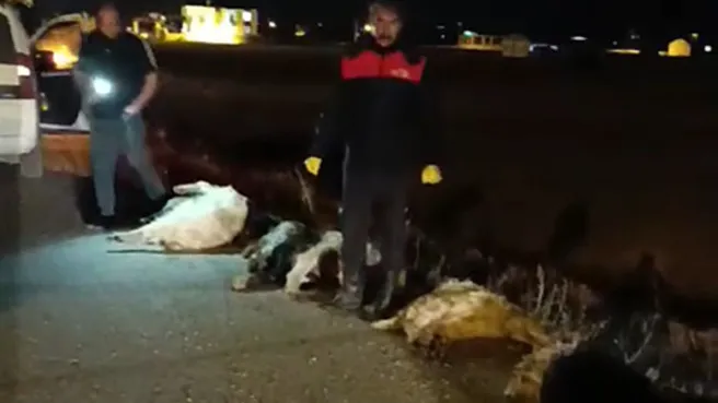 Hakkari’nin Yüksekova ilçesinde seyir halinde bulunan bir otomobil, karşısına çıkan koyun sürüne çarptı. Kazada 15 koyun telef olurken, sürücü kazayı yara almadan atlattı. Vatandaşların etrafa savrulan hayvanları yol kenarına taşımasının ardından yol yeniden trafiğe açıldı.