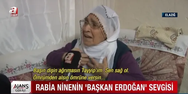 Erdoğan'a büyük sevgi besleyen Rabia nine bol bol dua etti.