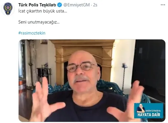 Emniyet Genel Müdürlüğü paylaşımında "İcat çıkarttın büyük usta... Seni unutmayacağız..." ifadeleri yer aldı.