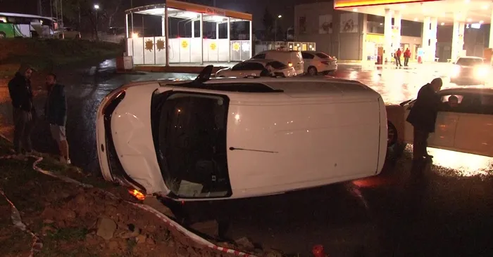 Edinilen bilgiye göre, İmdat G. idaresindeki 34 ACL 321 plakalı Ford marka hafif ticari araç, yağmurdan dolayı kayganlaşan yolda virajı döndüğü sürücüsünün kontrolünden çıktı. Yolun ortasındaki kavşağın refüjüne çarpan araç takla attı. Yolda yan yatan aracın sürücüsü yaralandı. İhbar üzerine olay yerine gelen sağlık ekipleri yaralıyı hastaneye kaldırdı.