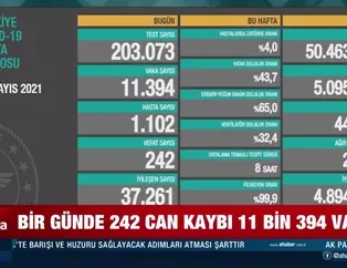 Türkiye'de son 24 saatte 203 bin 73 Kovid-19 testi yapıldı, 11 bin 394 kişinin testi pozitif çıktı, 242 kişi hayatını kaybetti. Ağır hasta sayısı 2 bin 670 oldu, 37 bin 261 kişinin Kovid-19 tedavisinin/karantinasının sona ermesiyle iyileşen sayısı 4 milyon 894 bin 24'e yükseldi.