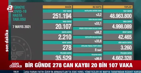 Sağlık Bakanlığı 7 Mayıs 2021 koronavirüs vaka ve vefat tablosu | Türkiye'de Kovid-19'dan kaç kişi öldü vaka sayısı ne kadar?