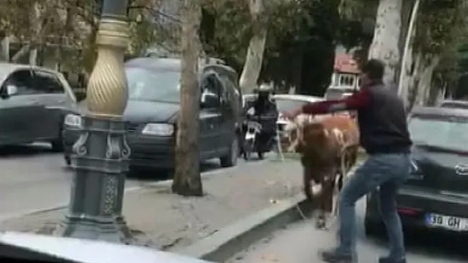 Sahibinden kaçan boğa trafiği birbirine kattı
