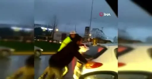 O anlar ise, başka bir otomobil içerisinde bulunan vatandaş tarafından cep telefonu ile saniye saniye kaydedildi.