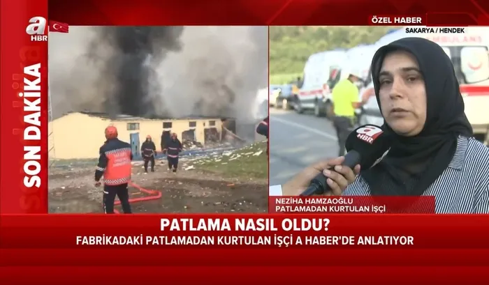 Sakarya Hendek'te bulunan havai fişek fabrikasındaki korkunç patlamada mucize eseri kurtulan Neziha Hamzaoğlu yaşadığı dehşet anlarını A Haber'e anlattı.