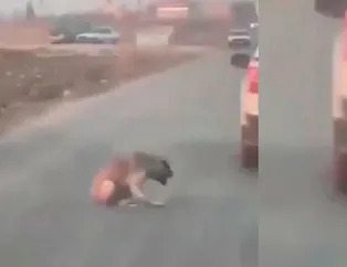 Yaralı köpek yol ortasında kalırken, sürücüler ise durmayıp yoluna devam etti.