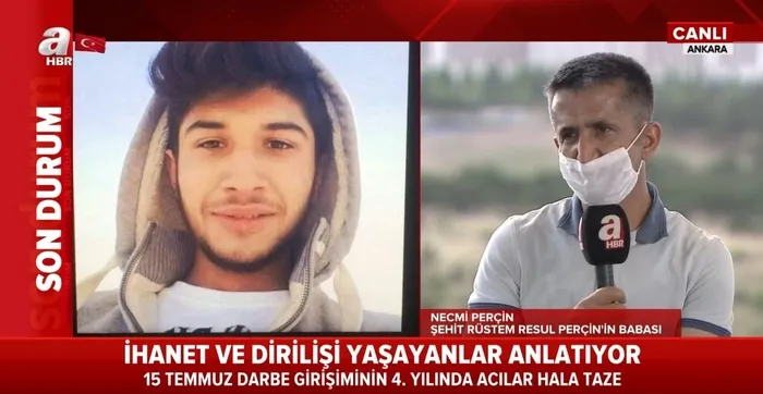 17 yaşında şehit düşen Rüstem Resul Perçin'in babası Necmi Perçin 15 Temmuz'da yaşananları anlattı. O gece evladını FETÖ'cülere yakın olduğu bilenen Turgut Özal Hastanesine götürüldüğünü ve 'doktor yok' denilerek tedavi edilmediğini söyledi. Acılı baba, "Milletimizden naçizane ricam. Kimse kimseyi cennete götüremez. Birilerinin eteğinden tutarak cennete giremezsiniz. Herkes kendi hesabını aklıyla verir. Birileri size cennet vaad ediyorsa arkanıza bile bakmayın kaçın! Yoksa kendi vatandaşınızı kardeşinizi vurursunuz. Allah, Mustafa Kemal Atatürk'ün kurduğu bu Cumhuriyeti ilelebet payidar kılmayı nasip etsin. Kimse 15 Temmuz'dan bir siyasi parti çıkarmasın. Herkes aklını başına devşirsin. Acı birdir.