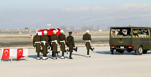 Kaya'nın askerlerce uçaktan alınan naaşı bir süre omuzlarda taşınıp, katafalka konuldu. Şehidin öz geçmişinin okunmasının ardından İl Müftüsü Hasan Hüsnü Sula tarafından dua edildi.