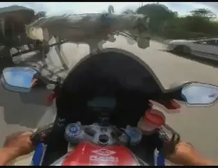 Şile'deki kaza, geçtiğimiz pazar günü meydana geldi. Emniyet şeridinde hızla ilerleyen Serhat A.'nın önüne yolun karşısına geçen at arabası çıktı. Serhat A. duramayarak ata çarptı ve savruldu. Kask kamerasına yansıyan kazada Serhat A. düşerek yaralandı.