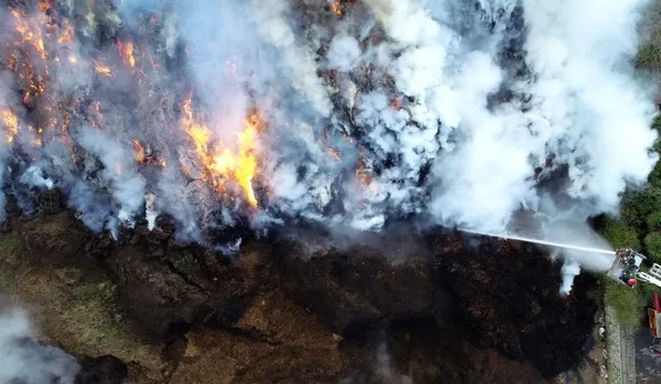 Öte yandan, bölgedeki çok sayıda itfaiye ekibi yangına müdahale de bulunuyor. Yangın drone ile görüntülendi. Dumanların yüzlerce metrelik alanı kapladığı havadan görüldü.
