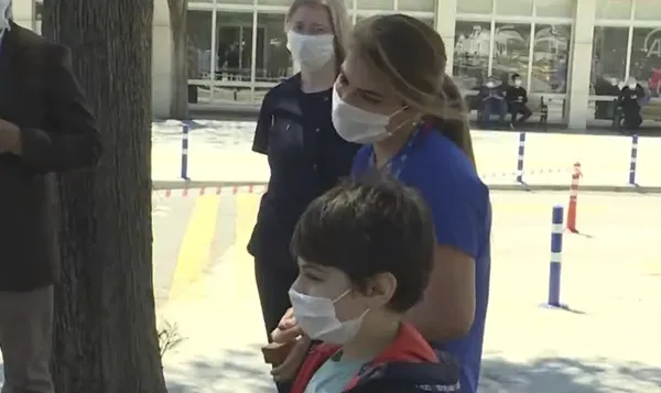 İzmir'de yeni tip koronavirüs (Kovid-19) tedavisi gördükten sonra hastanedeki görevine geri dönen ama çocuğuna hastalık bulaştırmamak için öğrenci yurdunda kalan hemşire Ayfer Açık'ın 9 yaşındaki oğlu, annesini görev yaptığı hastanenin bahçesinde ziyaret ederek Anneler Günü'nü kutladı.