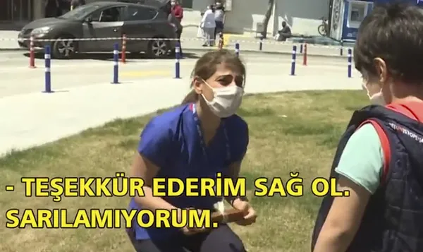 Hemşire anne ve oğlunun hastane bahçesindeki kavuşma anı çevredekileri de duygulandırırken, Açık da oğluna sarılmamak için kendini zor tuttu ve evladına elleriyle sevgi gösterilerinde bulundu.