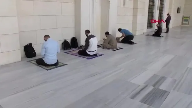 Cuma namazı kılmak için vatandaşlar Çamlıca Camii'ne gelmeye başladı.Camiye gelen vatandaşların maske taktıkları ve seccadelerini yanında getirdikleri görüldü. Cami girişinde maskesi olmayanlar maske ve tek kullanımlık seccade verildi.
