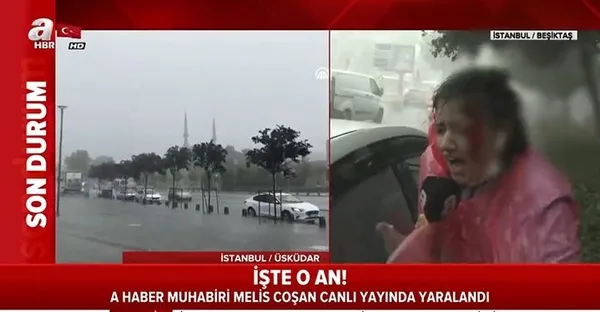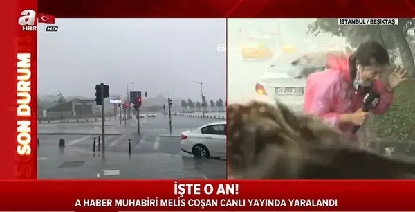 Son dakika haberi... İstanbul'da sağanak yağış etkili oldu. Beşiktaş'ta yaşananları aktardığı sırada A Haber muhabiri Melis Coşan canlı yayında yaralandı.