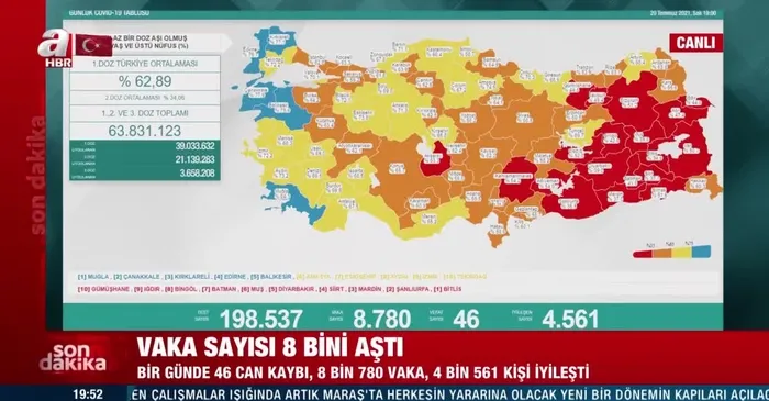 20 Temmuz 2021 Türkiye'nin güncel koronavirüs verileri açıklandı.