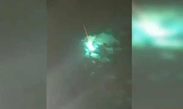 Videoda meteroun gökyüzünden süzülüş ve patlama anı görülüyor.