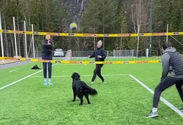 Koronavirüs (Covid-19) salgını nedeniyle maçlara katılamayan Norveçli plaj voleybolcusu Mathias Berntsen, köpeği ile antrenman yaptı. Sevimli köpeğin voleybol yeteneği izleyenleri hayran bıraktı.