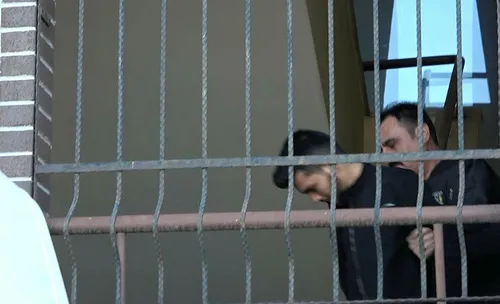 Zanlı üst kattaki merdivenler inişinde kısa süre görüntülenirken, ekip aracına bindirildikten sonra adliyeden götürüldü.