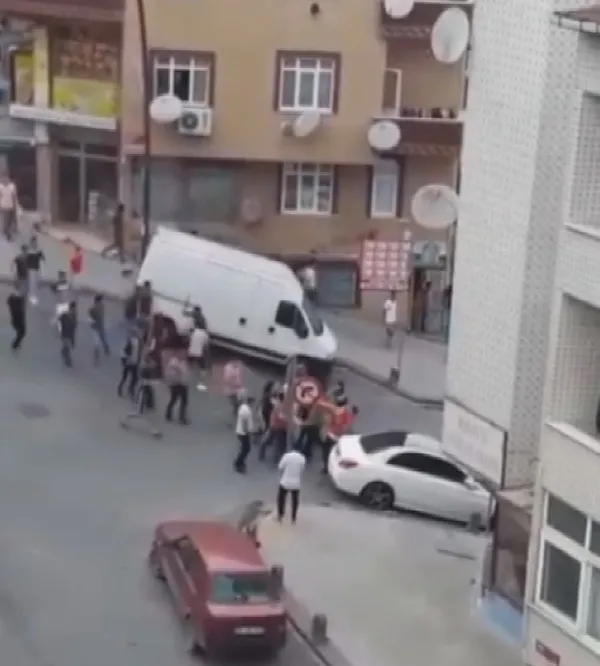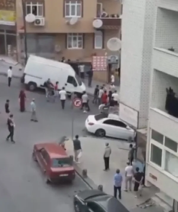 Kavga, cadde üzerinde bulunan binadaki kişi tarafından yukarıdan görüntülendi. Görüntülere yansıyan cadde üzerindeki kavgada çok sayıda kişi birbirine girdi. Kavgada iki kişinin bir kişiyi bir süre yerde sürükleyip fırlattıkları görüldü.