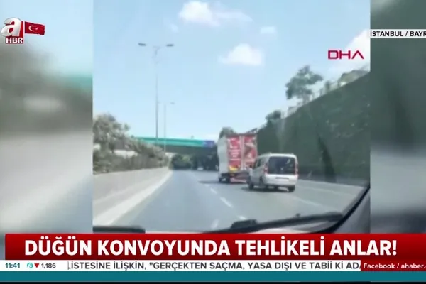 O-3 Otoyolu Bayrampaşa mevkii Edirnekapı istikametinde dün öğlen saatlerinde düğün konvoyundaki biri kamyonet iki araç, zikzaklar çizerek dakikalarca ilerledi. Bütün şeritleri kapatan iki araç diğer sürücüler için büyük tehlike oluşturdu. Düğün konvoyundaki diğer araçtakilerde pencere ve sunroof'tan çıkarak o anları görüntülemeye çalıştı. Otoyolda ilerleyen diğer sürücülerin araçlarında ise korku dolu anlar yaşandı. Zikzak çizen araçların yanından geçemeyen diğer sürücüler duruma tepki gösterdi.