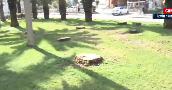 İzmir'in Konak ilçesinde en az 70 yıllık 8 palmiye ağacının kesildiği ortaya çıktı. Detayları A Haber muhabiri Gamze Elçi aktardı.