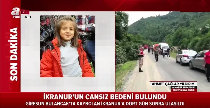 Son dakika haberi; Giresun'un Bulancak ilçesinde kaybolan 7 yaşındaki İkranur Tirsi'nin cansız bedenine ulaşıldı. Dört gündür her yerde aranan kayıp kızın cansız bedenine dere yatağında ulaşıldığı bildirildi. Detayları A Haber muhabiri Ahmet Çağlar Yıldırım canlı yayında aktardı.