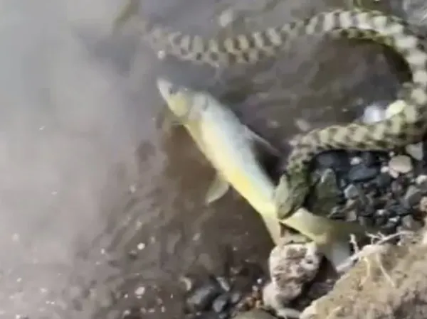 Son dakika haberi... Malatya'nın Arapgir ilçesinde, yılanın akarsuda bulunan alabalığı yakaladığı anlar, kameraya yansıdı. Bu anları izleyenler şaşırırken, sosyal medyada paylaşılan görüntü, çok sayıda kişinin ilgisini çekti.