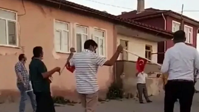 Sağlık Bakanı Fahrettin Koca, Çankırı'daki bir köy düğününde Türk bayraklı çubuklarla çekilen sosyal mesafeli halayın fotoğrafını "Çankırı’dan örnek geldi" diyerek sosyal medya hesabından paylaştı.