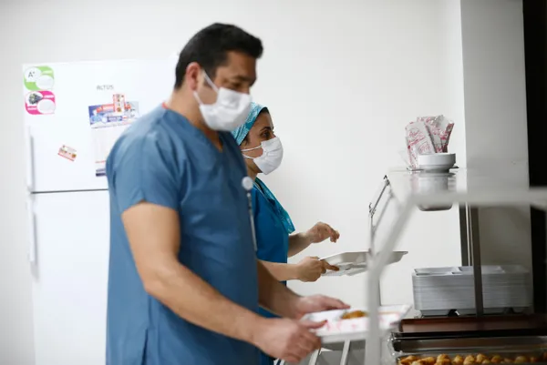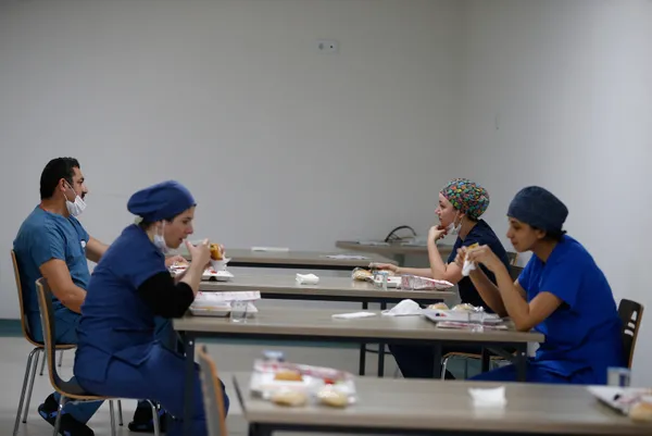 Doktorundan hemşiresine, asistanından hasta bakıcısına kadar bütün çalışanlar, hastalarının sağlık durumu kontrol ettikten sonra sahur için yemekhaneye geldi.