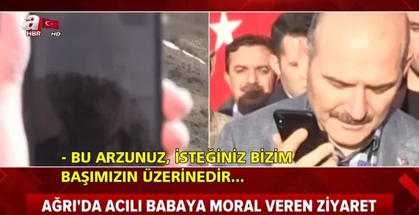 Ağrı'da oğlu PKK'lı teröristler tarafından kandırılıp dağa kaçırılan Vahit Çur'un babasına sürpriz bir ziyaret yapıldı. İçişleri Bakanı Süleyman Soylu ile görüştürülen acılı baba moral buldu.