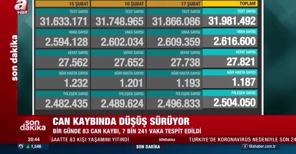 Türkiye'nin 18 Şubat koronavirüs tablosu açıklandı! 115 bin kişiye test yapıldı 83 kişi hayatını kaybetti