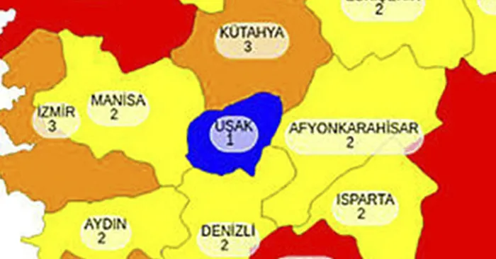 Koronavirüs haritasında, çevresindeki orta ve yüksek riskli illere rağmen Uşak düşük riskle dikkatleri üzerine çekti. Ege bölgesinde mavi kategoride yer alan tek kent oldu.