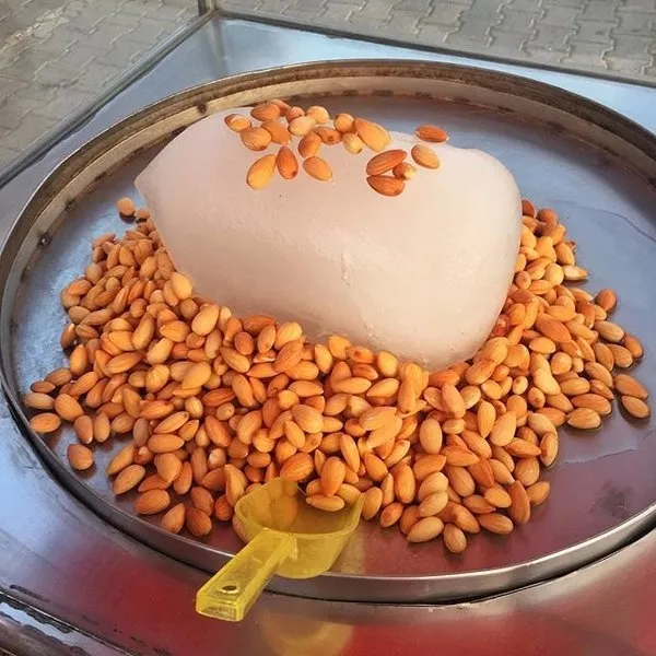 BUZLU BADEM: Taze bademler kaynatılır veya sıcak suda haşlanır, ardından soyulur ve buzda servis edilir.