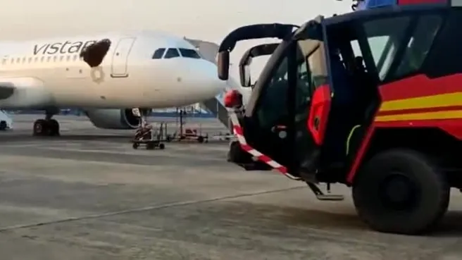 Hindistan'ın Kolkata Havalimanı'nda park halindeki bir uçağı yuva olarak seçen arılar istila etti. Havalimanında zor anlar yaşanmasına neden olan arılar tazyikli su ile dağıtılmaya çalışıldı. O anlar kamerada.