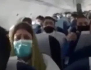 Uçakta panik anları kamerada! Çığlıklar yükseldi