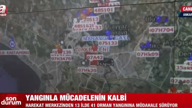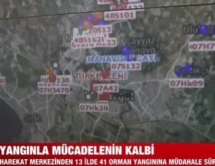 ''Şu an Türkiye'de 13 ilde 41 ormanıyla mücadelenin tamamı Yangın Harekat Merkezi'ndeki ekranlar vasıtasıyla takip edilerek hava, kara araçları yönlendiriliyor. Cep telefonu ve telsizler aracılığıyla kesintisiz iletişim sağlanıyor.
