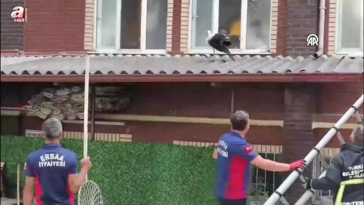 Tokat'ın Erbaa ilçesinde bir caminin sundurmasında mahsur kalan yaralı leyleği itfaiye ekipleri kurtardı. A HABER UYGULAMASINI İNDİRMEK İÇİN TIKLAYIN