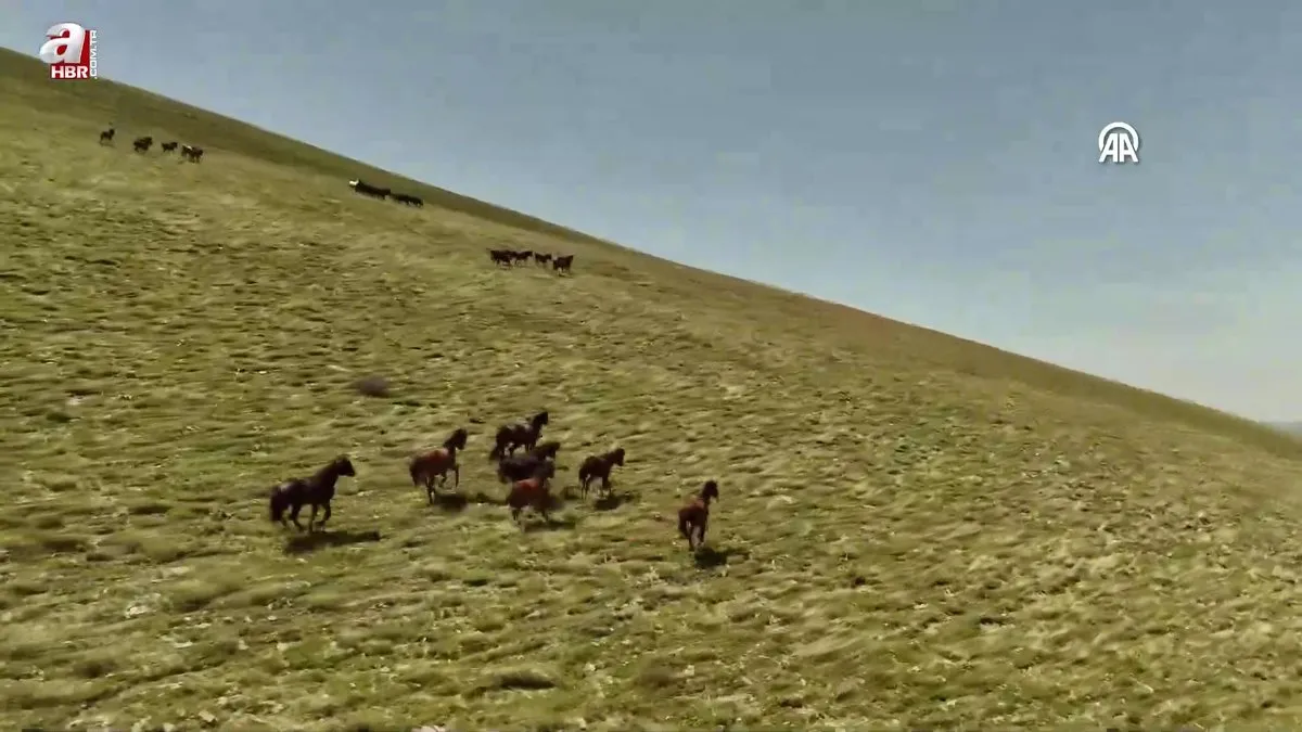 Yılkı atları Yama Dağı'nda özgürce koşuyor