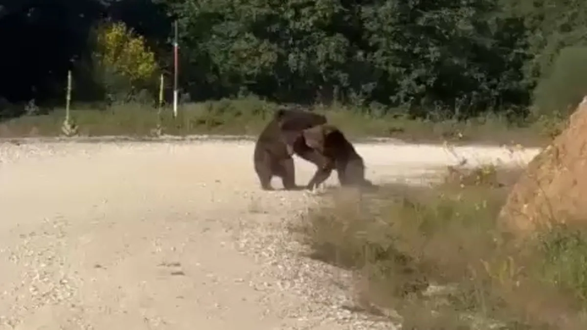 Bursa'nın Gemlik ilçesinde yolun ortasında güreşe tutuşan ayılar, korku dolu anlara sahne oldu. Vatandaşın cep telefonu kamerasına yansıyan görüntülerde, ayılar daha sonra yoldan aşağı yuvarlandı.