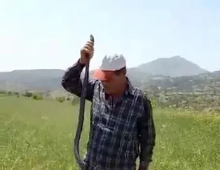 Elazığ'da tarlada çalışırken yakaladığı yılanın boyunu merak eden Hüseyin Koç, kendi boyu ile kıyaslayarak ölçtü. Koç'un yılan canlıyken ölçüm yapması ve rahat tavırları görenleri hayrete düşürdü.