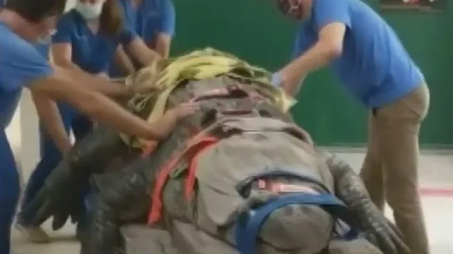 ABD'de Florida Üniversitesi Veterinerlik Koleji'ne, arka bacak topallığı nedeniyle 3,5 metrelik Bob adındaki dev timsah tedavi altına alındı. Hastane yetkilileri, bugüne kadar tedavi ettikleri en büyük timsah olduğunu açıklarken Bob'un görüntüleri yaklaşık 1,5 milyon kişiye ulaştı.