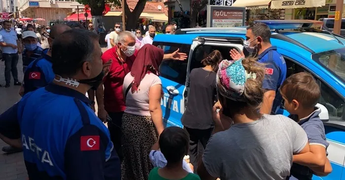 Yakalan dilencilerin Zabıta karakoluna götürülmesi için ekip otomobili beklenirken dilenerek topladıkları paralarla çocuğuna dondurma alan dilencinin rahatlığı şaşkınlık oluşturdu.