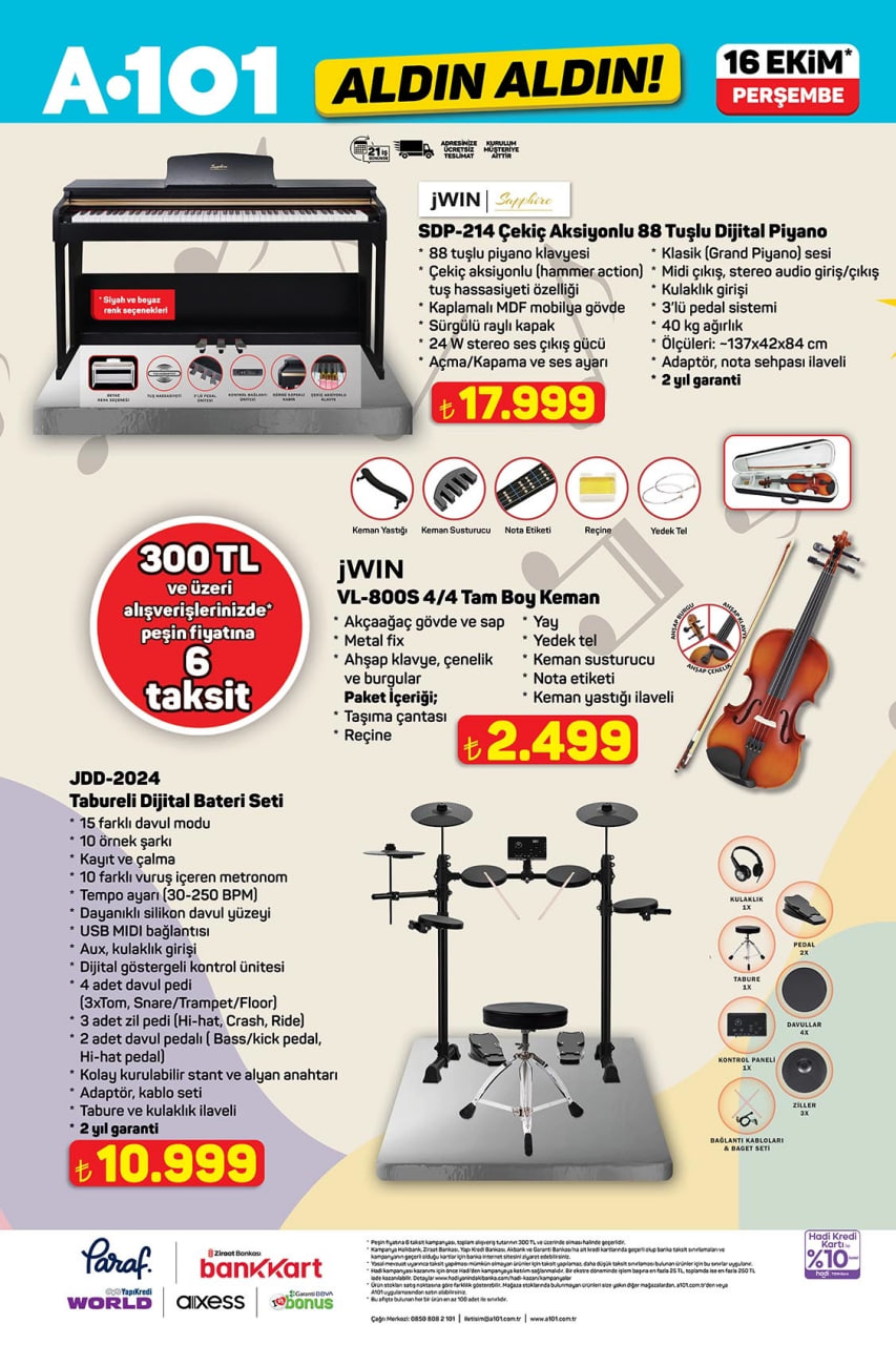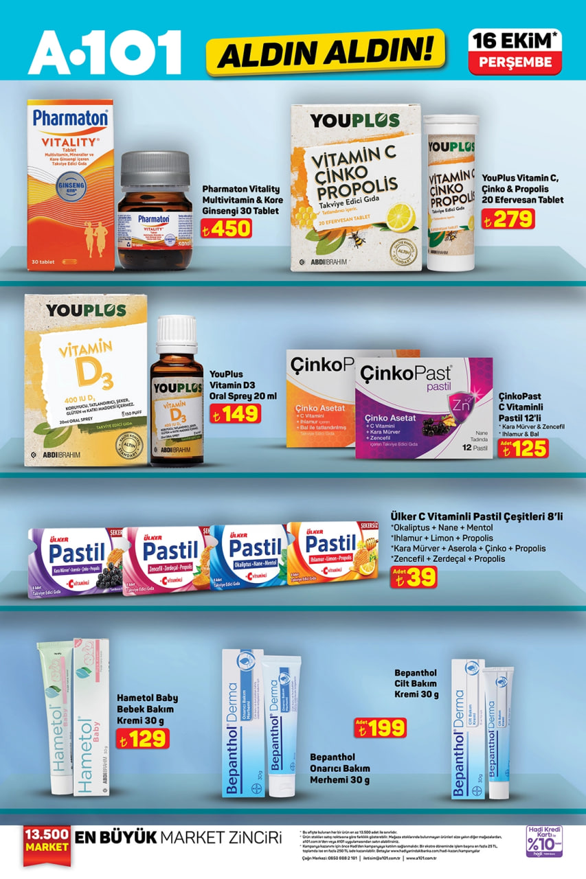 A101'in 16 Ekim 2025 tarihli yeni aktüel ürün kataloğu satışa çıktı. Bu hafta A101 marketlerde, ev eşyalarından kişisel bakım ürünlerine kadar yüzlerce üründe indirim fırsatları başladı. Su sebili, dik süpürge, saç düzleştirici, lazer epilasyon cihazı gibi dikkat çeken ürünler uygun fiyatlarla satışa çıktı. Kış aylarında sıkça tercih edilen ikiz balık tavası ve ev terliği çeşitleri de bu haftanın öne çıkan ürünleri arasında yer alıyor. İşte bu haftanın A101 fırsat listesi…