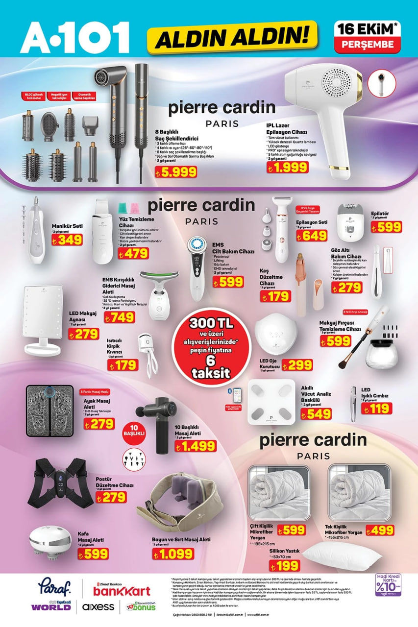 A101'in yeni haftalık kampanyası belli oldu. 16 Ekim Perşembe A101 aktüel ürün kataloğunda hem ev eşyalarında hem de kişisel bakım ürünlerinde avantajlı fiyatlar yer alıyor. Su sebili, dik süpürge, saç şekillendirici, epilasyon cihazı, halı ve daha birçok üründe indirimler bulunuyor. Peki A101 Aldın Aldın kataloğunda hangi indirimler var? İşte 16 Ekim A101 aktüel kataloğu ve fiyat listesi…