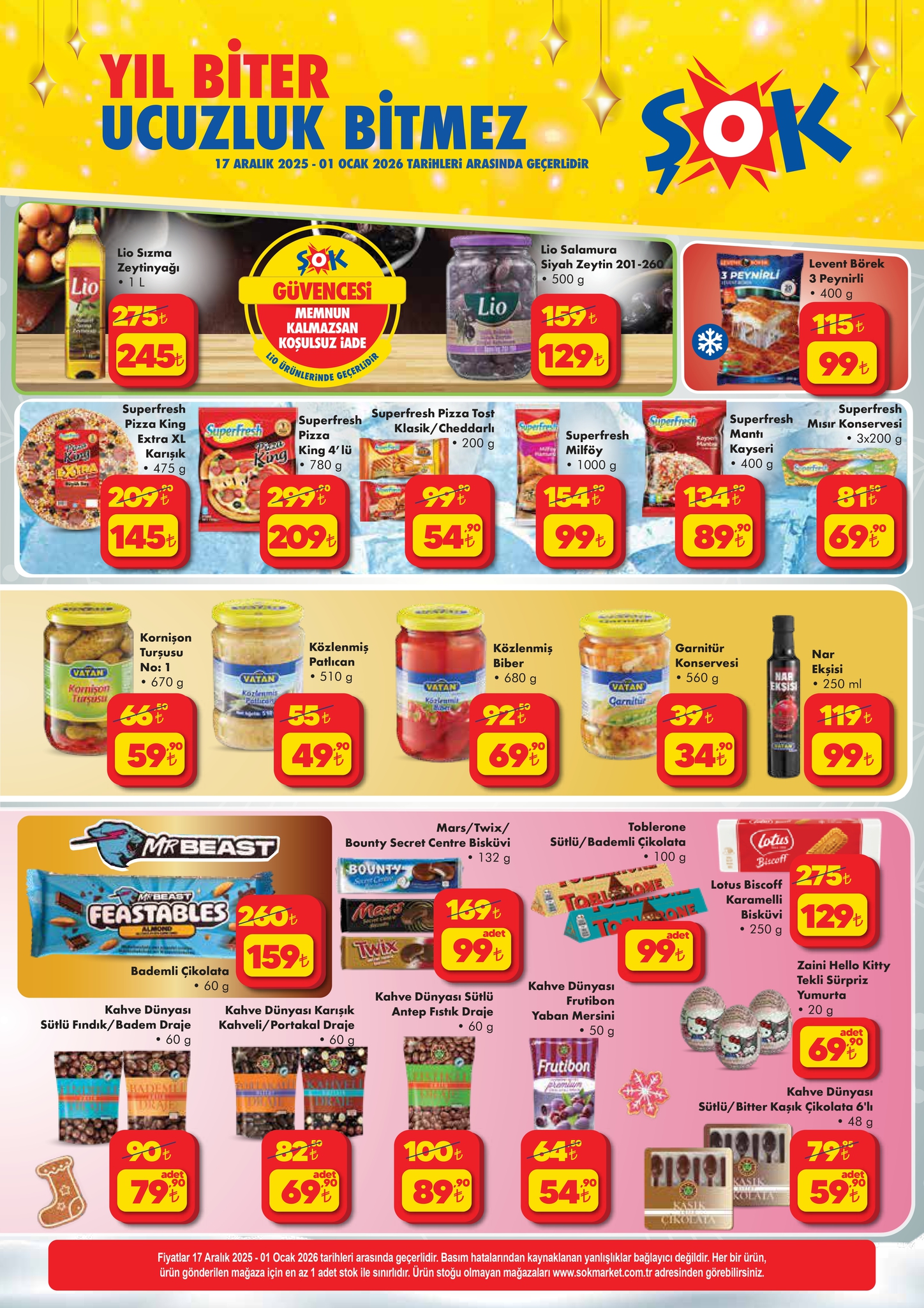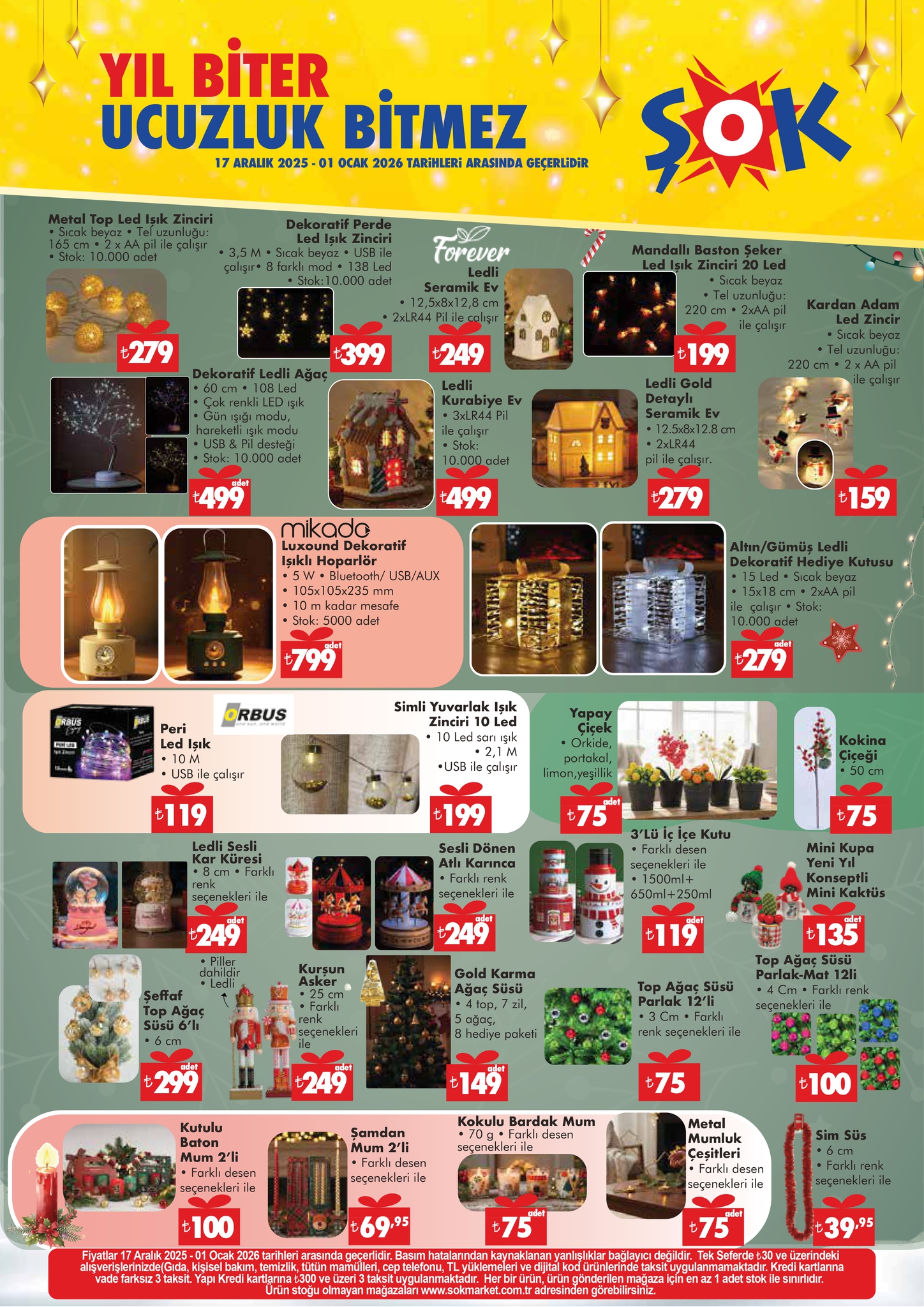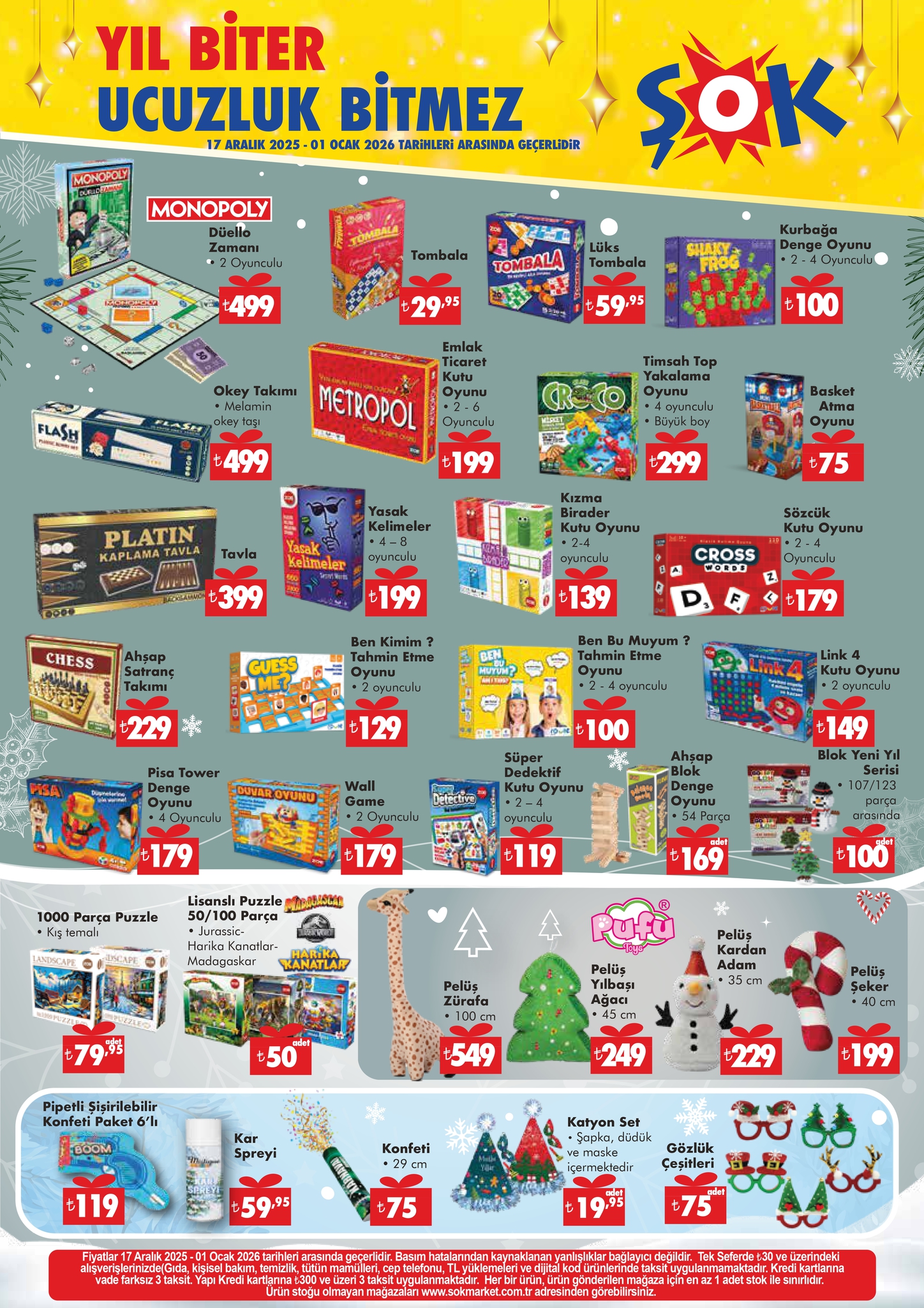 ŞOK, 17 Aralık 2025 - 1 Ocak 2026 tarihleri arasında geçerli aktüel ürünler kataloğunu duyurdu. Yılbaşı temalı mutfak ürünleri ve eğlenceli oyun setleri bu hafta öne çıkan ürünler arasında. Peki ŞOK aktüel kataloğunda hangi indirimler var? İşte yıl sonu indirimleri ve fiyat listesi…