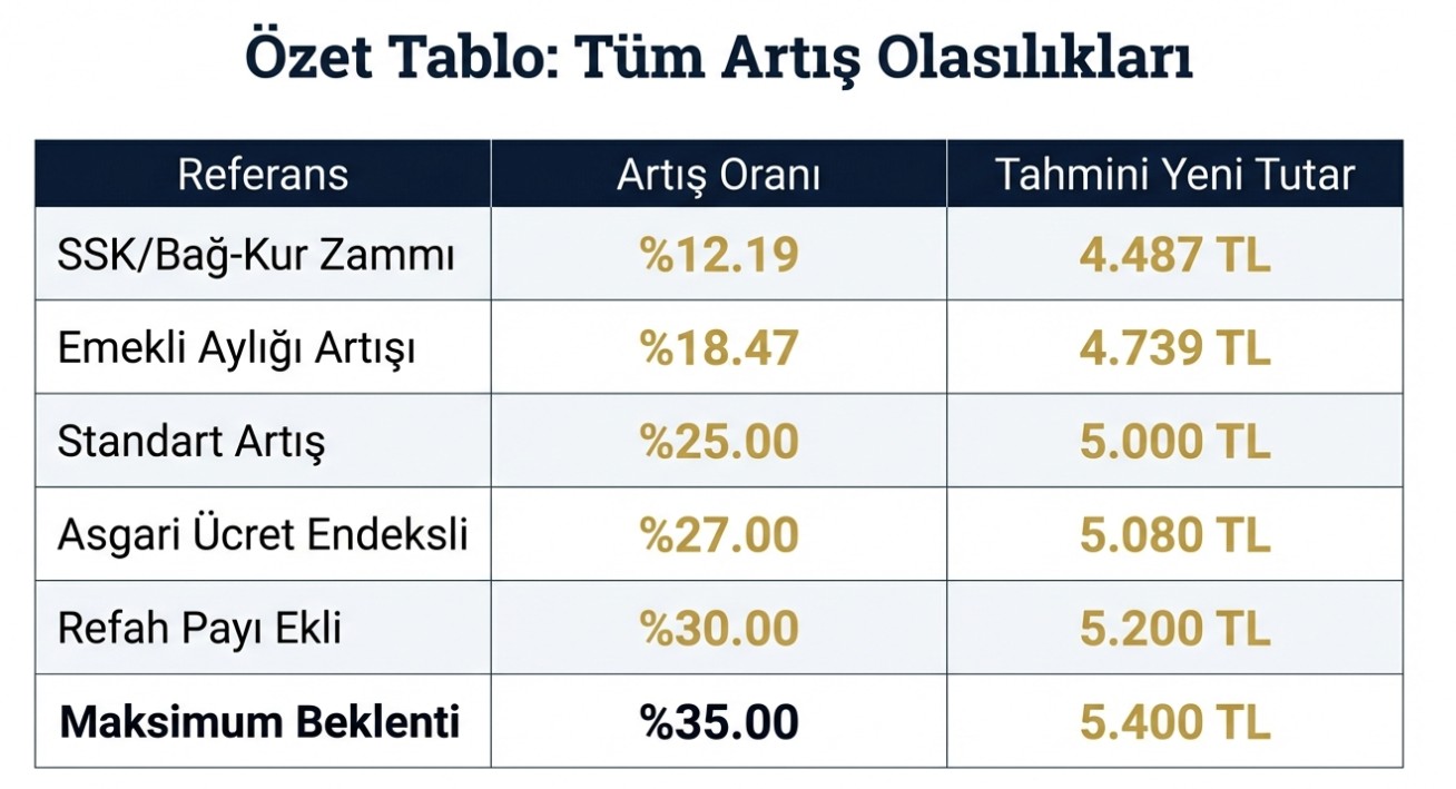 En düşük emekli aylığında uygulanan yüzde 18,47'lik artış oranı dikkate alındığında ise ikramiye tutarı yaklaşık 4 bin 738 liraya ulaşıyor.