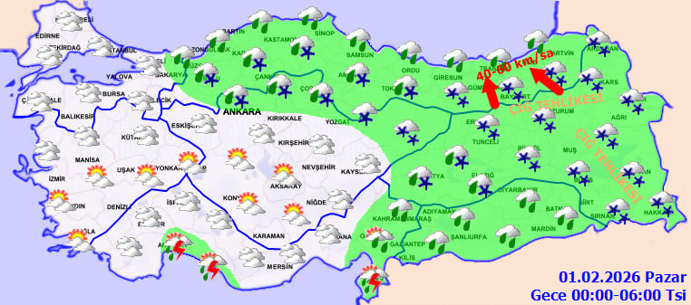 Doğu Anadolu ile Doğu Karadeniz'in iç kesimlerinde buzlanma ve don etkisini artırıyor. Kuvvetli yağışlar bazı bölgelerde kar şeklinde görülürken, yüksek kar örtüsüne sahip eğimli alanlarda çığ riski bulunuyor.